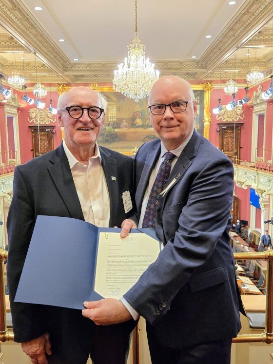 Le 4 décembre, une déclaration officielle a été prononcée en son honneur au Salon rouge de l’Assemblée nationale. Il a aussi reçu un certificat de reconnaissance et une lettre du premier ministre François Legault, soulignant 46 ans d’engagement bénévole au service de l’inclusion. Cet hommage a été rendu possible grâce à M. Mario Asselin, député de Vanier-Les Rivières de l’Assemblée nationale.